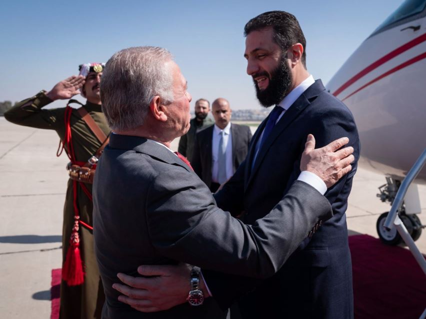 استقبل جلالة الملك عبدالله الثاني، اليوم الأربعاء، الرئيس السوري أحمد الشرع لدى وصوله إلى مطار ماركا في زيارة رسمية إلى المملكة.