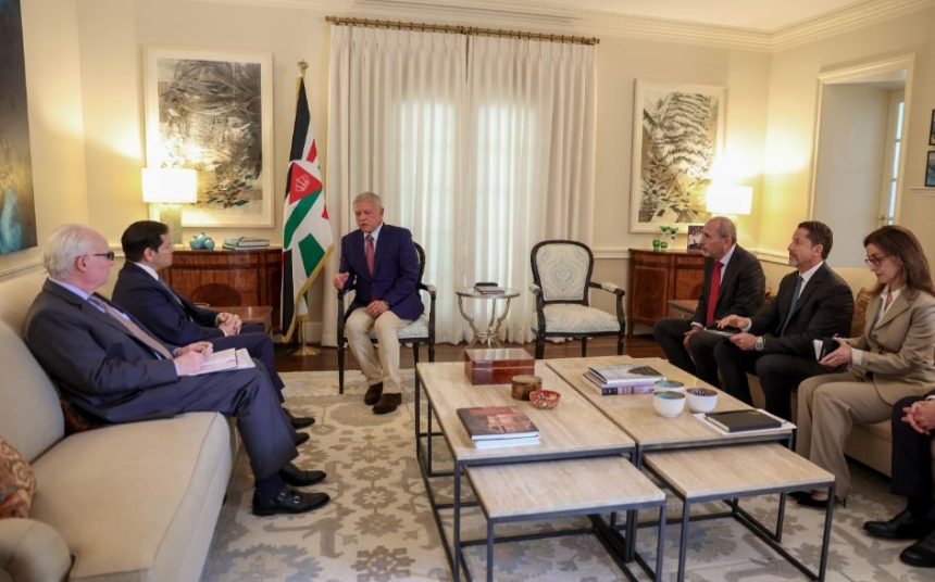 التقى جلالة الملك عبدالله الثاني، يوم أمس الاثنين في العاصمة الأمريكية واشنطن، بوزير الخارجية الأمريكي ماركو روبيو، حيث تناول اللقاء سبل تعزيز الشراكة الاستراتيجية بين المملكة الأردنية الهاشمية والولايات المتحدة الأمريكية، وآفاق توسيع التعاون في مختلف المجالات.