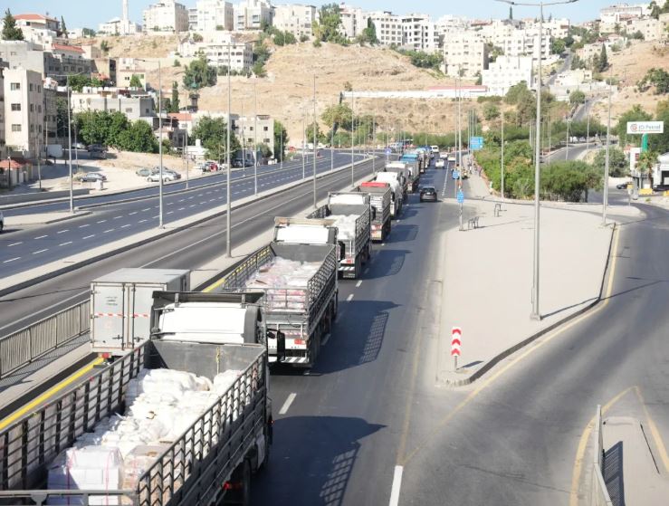 وتحمل الشاحنات مواد غذائية أساسية تهدف إلى تلبية الاحتياجات المتزايدة لأهالي قطاع غزة في ظل تفاقم الأزمة الإنسانية، وتأتي ضمن سلسلة من الجهود المستمرة التي يقودها الأردن على المستويين الإقليمي والدولي، للتخفيف من معاناة أهل القطاع وتقديم العون الإغاثي العاجل لهم.