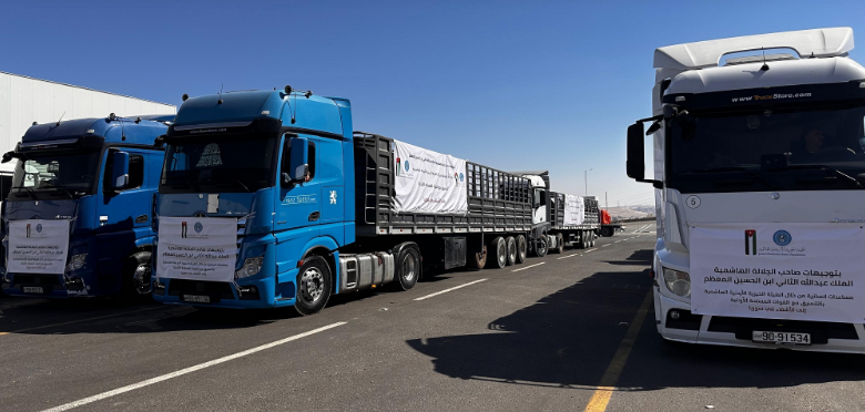 بتوجيهات ملكية سامية، قامت الهيئة الخيرية الأردنية الهاشمية بالتعاون مع القوات المسلحة الأردنية – الجيش العربي، اليوم الخميس، بإرسال قافلة مساعدات غذائية إلى الأشقاء في الجمهورية العربية السورية.