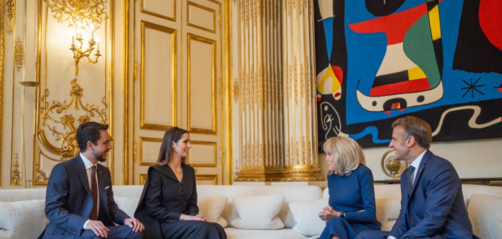 وحضرت سمو الأميرة رجوة الحسين والسيدة بريجيت ماكرون، عقيلة الرئيس الفرنسي، جانباً من اللقاء، فيما أقام الرئيس ماكرون مأدبة غداء رسمية تكريماً لسمو ولي العهد.