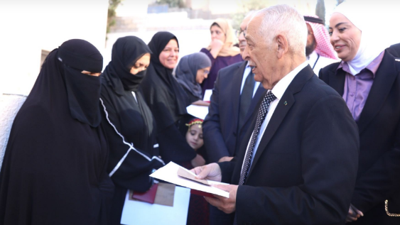 وسلّم رئيس الديوان الملكي الهاشمي يوسف حسن العيسوي، رئيس لجنة متابعة تنفيذ مبادرات جلالة الملك، مفاتيح الشقق وشهادات الانتفاع للأسر المستفيدة، بحضور وزير الأشغال العامة والإسكان المهندس ماهر أبو السمن، ووزيرة التنمية الاجتماعية وفاء بني مصطفى، ومحافظ العاصمة ياسر العدوان، ومدير عام مؤسسة الإسكان والتطوير الحضري جمانة العطيات، ومدير مكتب الأردن في هيئة الأعمال الخيرية العالمية – الإمارات العربية المتحدة رائد صبري أبو علفة.